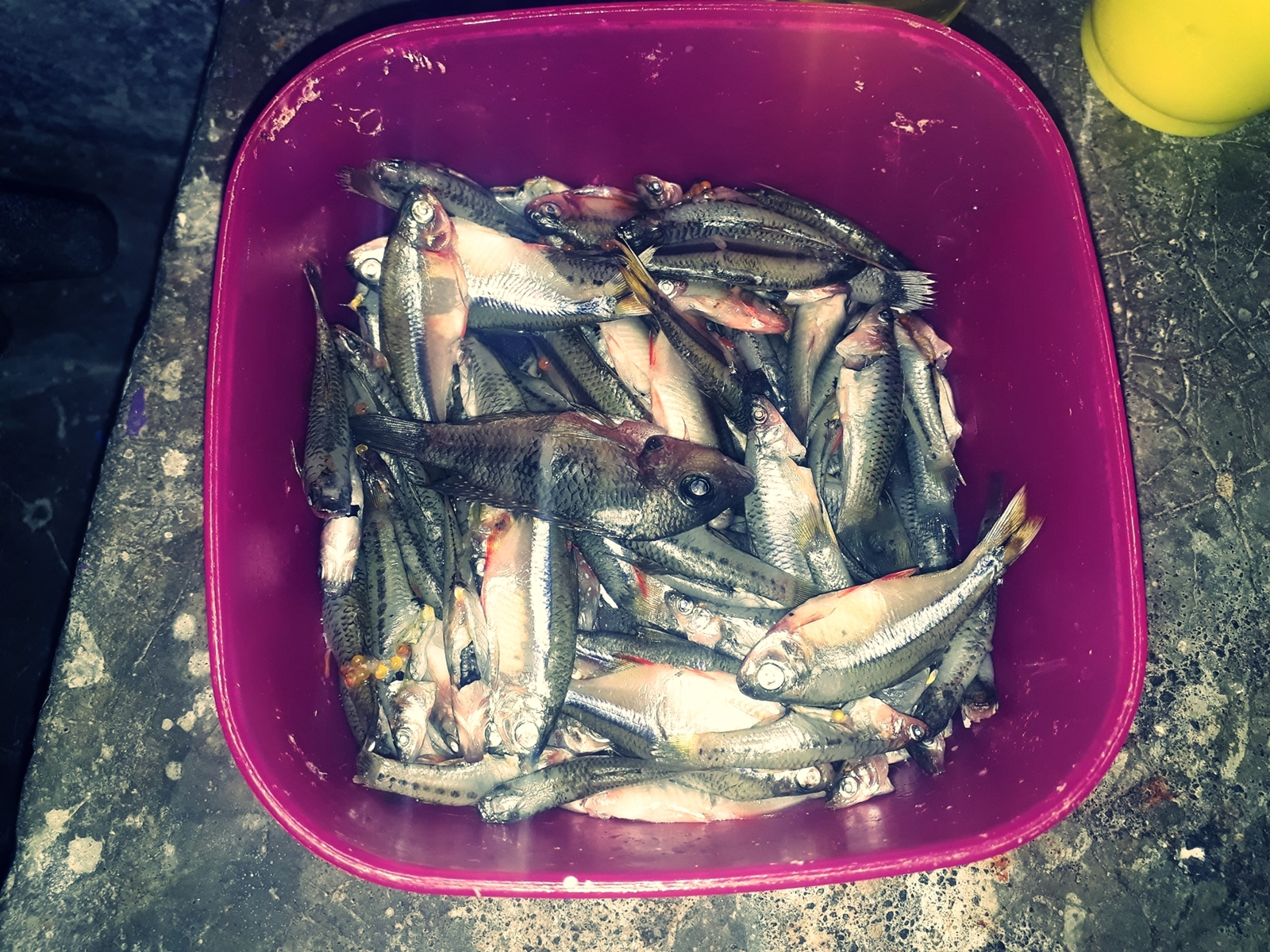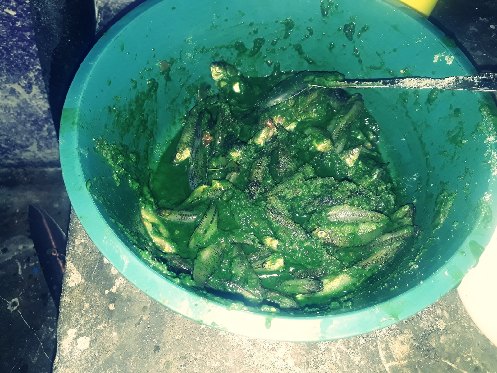 Una vez terminado este proceso se dispone a lavarlas, previamente a esto los hombres de la comunidad consiguen uno de los ingredientes principales, el pescado. El cual lo substraen directamente del río que está dentro del pueblo.