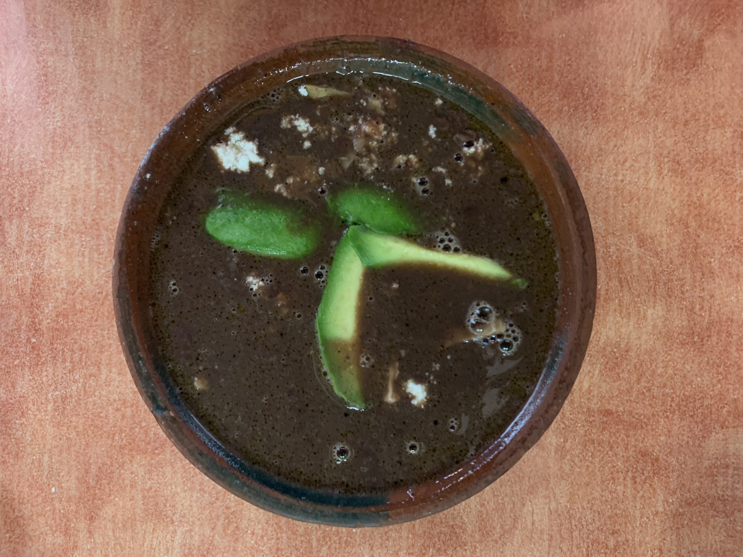 Desde luego, no estás allá, pero claro que estás frente a una tehuana: a un muro de este restaurant miniatura lo ocupa la foto monumental de una señora con su vibrante vestido de lienzos con flores rojas y amarillas, y el cuerpo cubierto de collares de monedas y montones de alhajas doradas. Te mira seria, inquisitiva, aunque tú lo que haces es sonreír: la cuchara deja en tu boca una sopa de frijol, pasilla, tortilla frita y aguacate. Da culpa que ese deleite que reanima tu cuerpo cueste solo 45 pesitos, aunque todo en esta casona virreinal de Soledad -la gran calle de productos oaxaqueños de la capital- es baratísimo, ya sea que comas o desayunes: huevos revueltos bañados en salsa jitomate con frijoles refritos, 55 pesos. Chicharrón en salsa de jitomate con frijoles, 65. Arroz con chepiles (quelite oaxaqueño) 25; o con mole, 35.