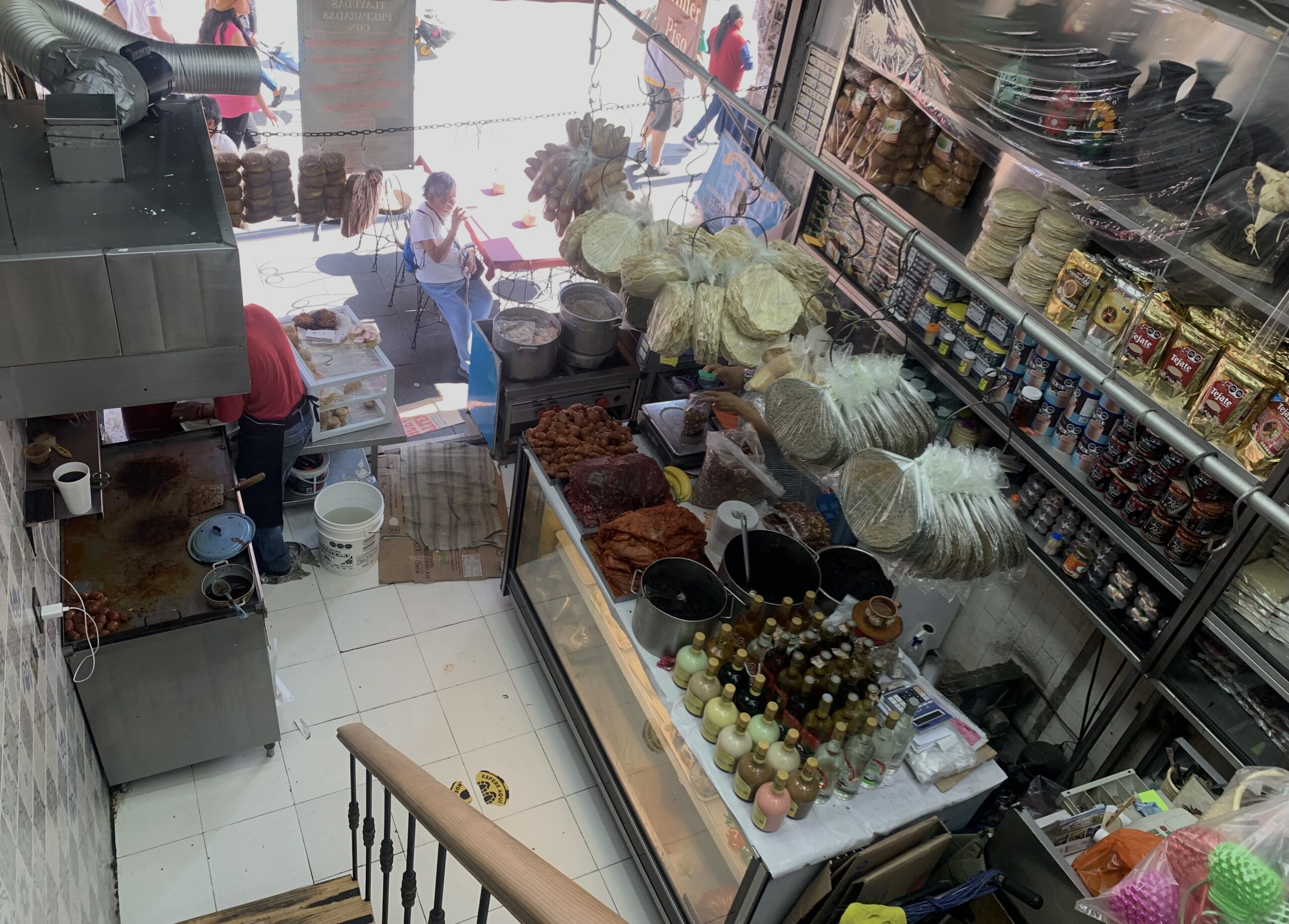 Pero ni el deterioro mata la fe en estas calles a espaldas de Palacio Nacional. Frente a Aquí es Oaxaca están los Antojitos Mexicanos Perpetuo Socorro, y en nuestro restaurante (también conocido como Casa Nela) un cartel reza lo siguiente: Gracias, Señor Jesús, por un día más / Bendice esta fuente de trabajo, también a los clientes que lo frecuentan / Y por cada peso que reciba de ellos, multiplícales su dinero. Quién sabe si logren tan generosa multiplicación (yo no la percibí), pero al menos con su menú no te roban ni un tostón. Al contrario, muy samaritanamente nos nutren a los capitalinos.