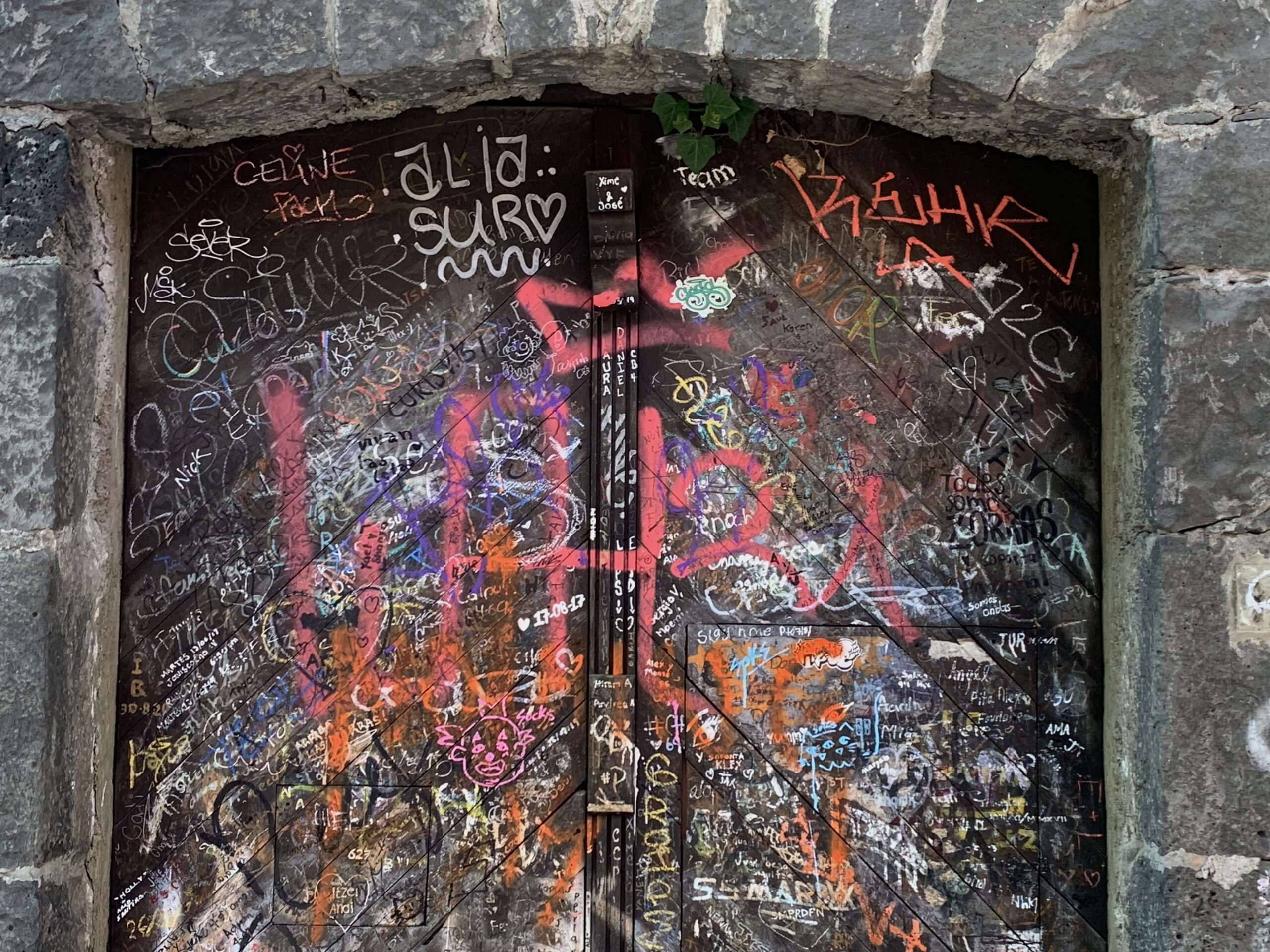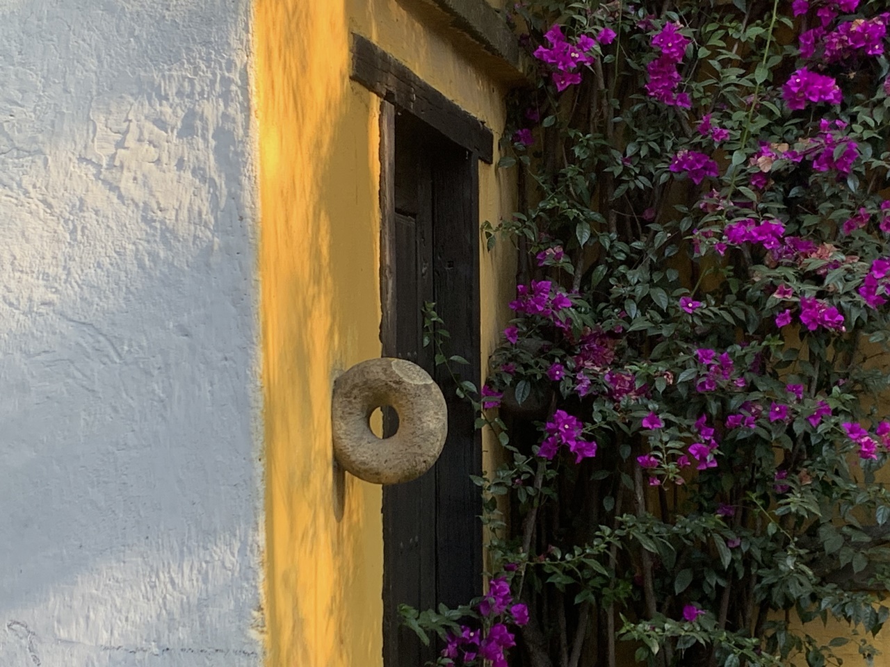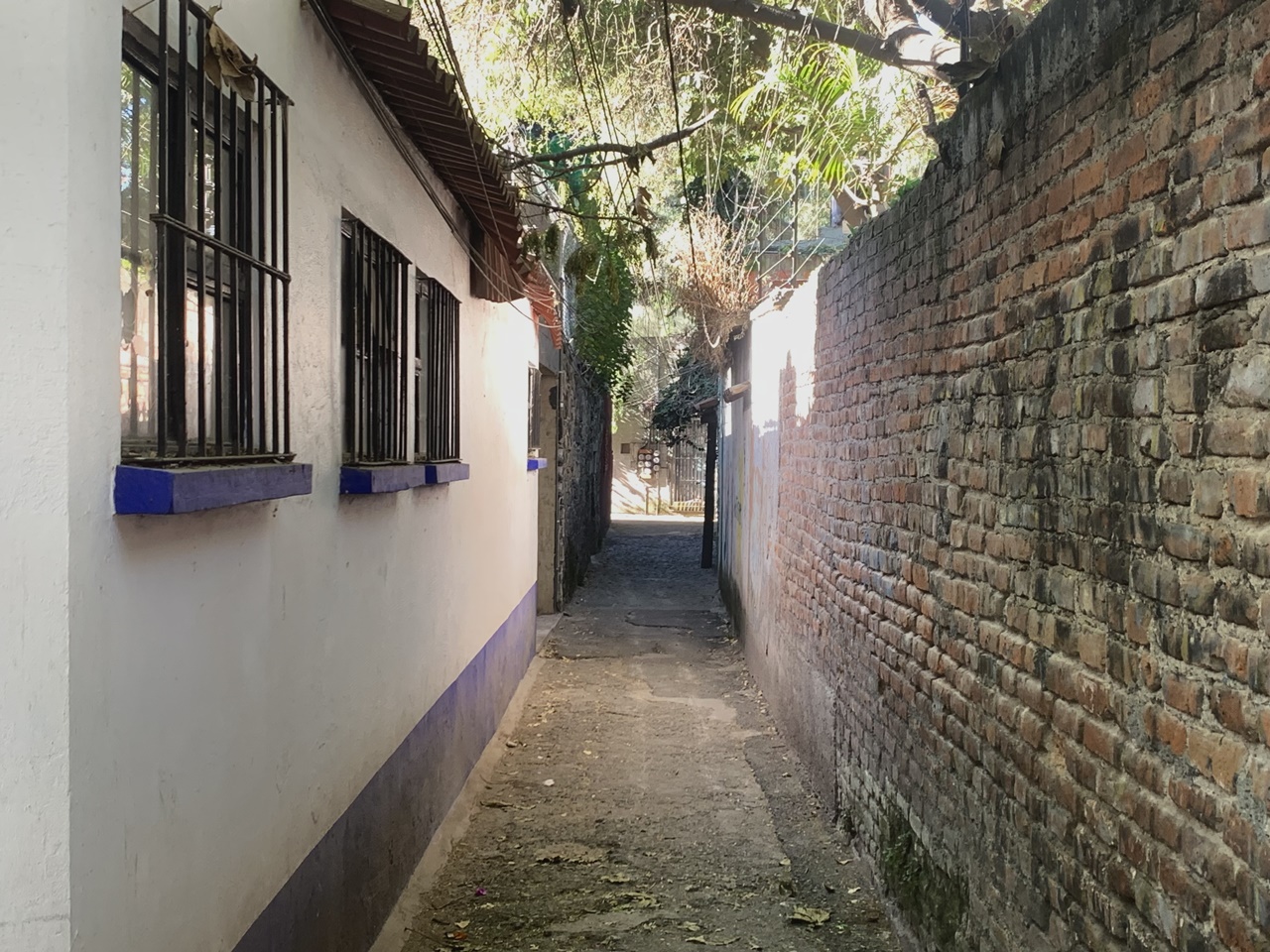 Rincón oculto de la Ciudad de México, este es un fortín de la historia: los cedros, arces, liquidámbar, enormes, vibrantes y fértiles como guardias musculosos, desde lo alto forman arcos que abrazan desconfiados lo que en su calle sobrevive pese a la destructiva vocación humana. Hay techos de tejas, farolitos de días de don Joaquín Pardavé, enrejados porfirianos, azulejos empotrados a las esquinas con santos piadosos, fachadas de adobe enamoradas de hibiscos marítimos que las besuquean melosos con sus enredaderas. Y hay una rareza más: un antiquísimo portón que parece resguardar una hacienda fantasma ha sido intervenido con plumones de colores de cientos -acaso miles- de novios de todos los tiempos. Quizá ya ni vivan quienes aquí sellaron su unión, pero están eternizados en un apasionado y hermoso enjambre colorido: Xime y José, Laura y Daniel, Sergio y Noemí, Alex y Montse. Que su amor haya sido duradero, o al menos volcánico. Como debe ser.