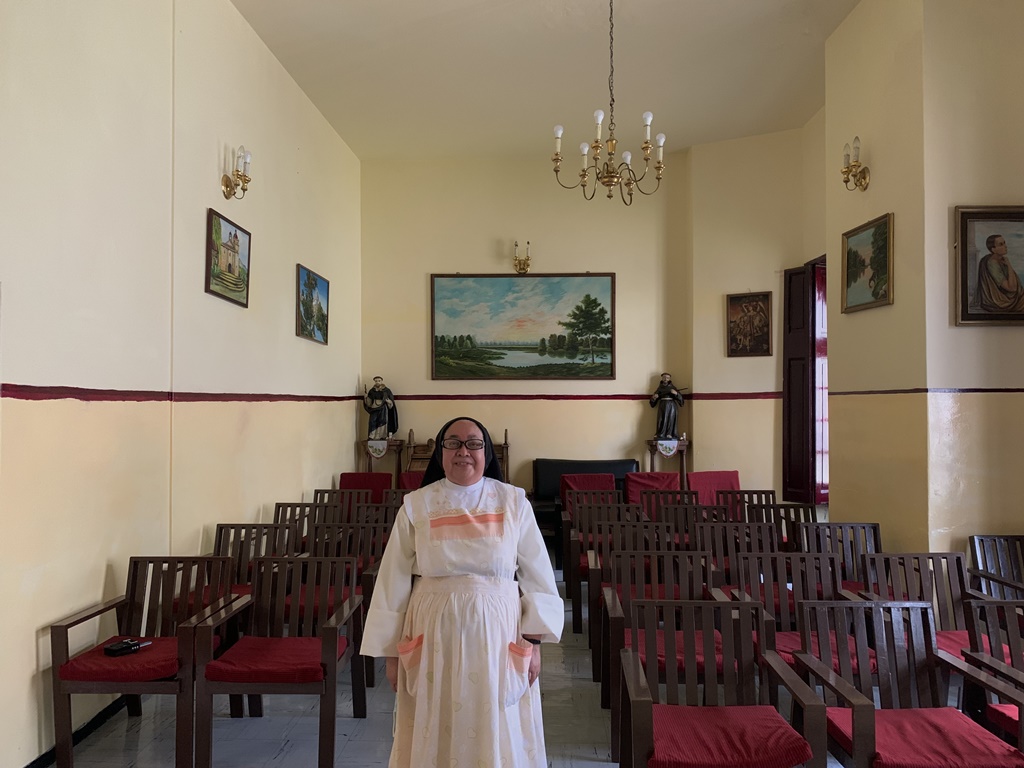Baja tan pero tan rápido que al ver su alegre cara redonda imagino que es una monja con súper poderes gimnásticos. “Sor Juana, para servirle”, se presenta. “Vaya nombre”, respondo, y en las escaleras me voltea a ver: “así es, jajaja”, se carcajea esta mujer, una de las 18 hermanas que viven en lo que hace un siglo fue casa de Octavio y familia pero que hoy es el Convento Santa Catalina de Siena.