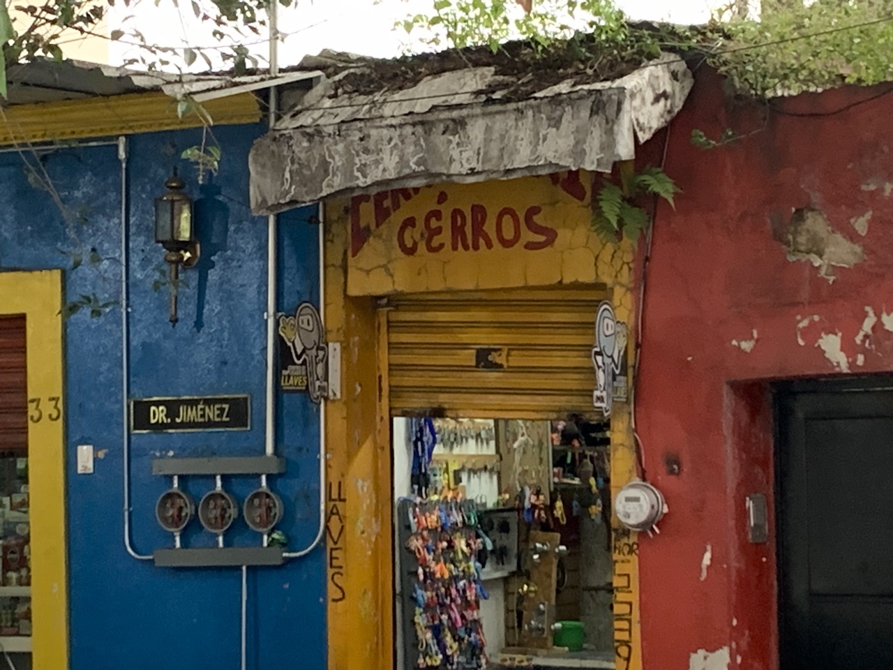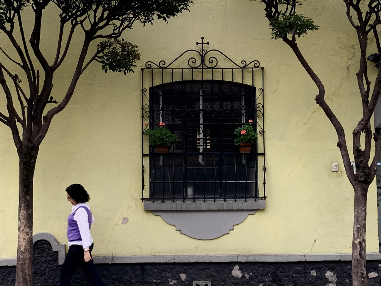 Las viejitas se asoman para regar en los salientes de sus ventanas malvones vigorosos y floridos, tan rosados que deslumbran. Hay otras ventanas de madera atestadas de agujeros creados por polillas desde los días de don Porfirio, labor heredada a sus hijas, nietas y bisnietas, polillas que aún no se jubilan y degluten voraces los tablones que se desmoronan. Y también existen ventanas que ocultan salas de altísimos techos: mujeres y hombres sombríos que viven ahí (era la casa de su tía que murió soltera) fisgonean hacia afuera. Sus miradas ojerosas atraviesan los herrajes negros decorados con grecas, y que en lo alto imponen sus convicciones católicas con firmes cruces de hierro. Serias y serios, los moradores te clavan sus miradas de miedo desde su casa de San Pedro de los Pinos, el siempre católico. Persígnate, ahora mismo.