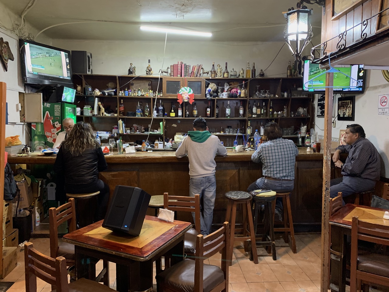 Ya es tarde. Nos despedimos de El Negrito y de los 4 o 5 que beben en la barra y bromean bajo dos pantallas que dan noticias del Cruz Azul a las que nadie presta atención. En este momento experimentan la fase 3: sentimentalismo.
