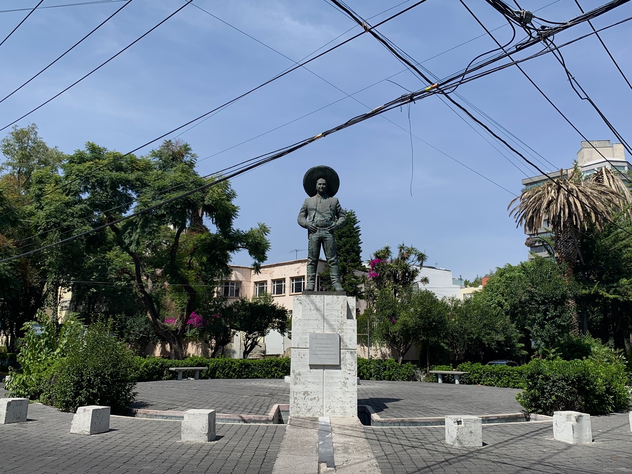 Es probable que en la casa de Del Ángel 44, el gran conquistador mexicano llorara a la mujer que no terminó de conquistar. En la Plaza Jorge Negrete, rodeada de plantas -aligustres del Japón, chirimoyas, fresnos rojos- hay una fuente seca de azulejos verdes que jamás tiene agua, y cuatro frías bancas de cemento que nadie usa.