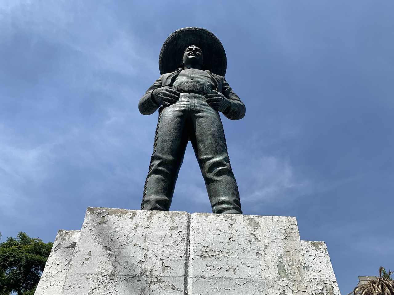 Atrás tuyo, soberbio, seguro, orgulloso, un imponente Jorge Negrete de piedra, elevado sobre un pedestal, con una sonrisa que le desborda la cara observa exactamente lo mismo que tú: la coordenada de la casa que en 1944 construyó a su madre, Emilia Moreno, amorosa guanajuatense que lo acompañaba en su estruendoso éxito.