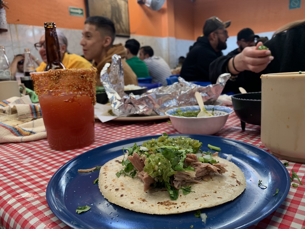 Tiene bandas musicales con tarola, barbacoa, altares a la virgen, nixtamales, cebolla picada, polvorientos óleos de girasoles y mujeres desnudas, micheladas, salsas, tortillas a mano, cilantro picado, ofrendas de muertos, limones y tres millones de mexicanidades más. E incluso posee rarezas como una juguetería en pleno comedor, un aro de básquet sobre la gente que paladea sabrosuras y un enorme gráfico a la vista de todos con la maniobra de Heimlich para que salves con apretujones abdominales a un comensal al que -atorado en su garganta el taquito de espinazo- se lo está cargando el payaso.