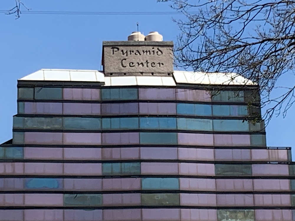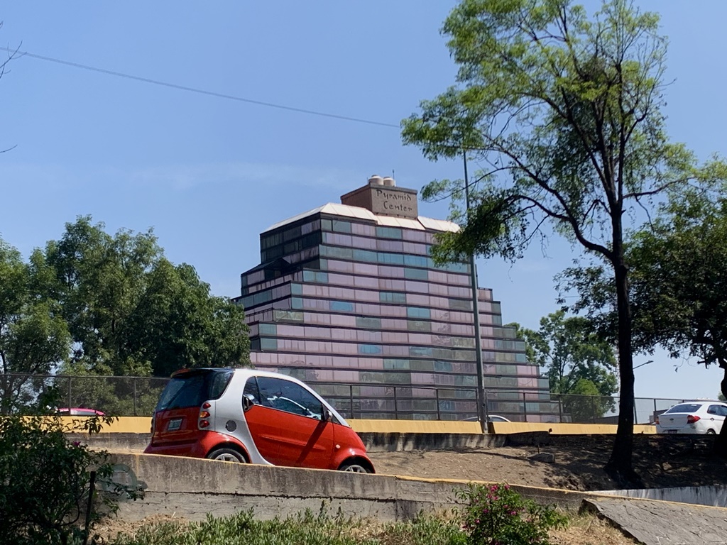 El Pyramid Center es triangular como cualquier pirámide (los pisos inferiores son largos y se van acortando hacia lo alto), y su exterior está forrado con cristales tornasol violetas, verdes, azules, pero por efecto de la vejez se les están derritiendo los colores. Son como un ancianito que llora el tiempo y las humillaciones. ¿Humillaciones? Así como lo leen. Eché un ojo en las redes a lo que la gente piensa del edificio y me dolió el corazón. Ahí les va. Ricardo Ward: “Horrendo”. Arturo Damm: “espantoso”. Sam Rodríguez: “mentada de madre”. Ramon Mew: “una mierda”. Mario Arredondo: “ganador del diseño más feo”. Miguel Burkle: “cada que lo miro me arranca carcajadas”. Jaime Dávila: “inconfundible por feo”. Tarsicio Sañido: “feo con f de futa madre”. Brisa Capri: “referente de lo feo en las clases de diseño arquitectónico”. Compañere: “Los últimos tres pisos parecen madrigueras”. Belleza: “el edificio más feo de la ciudad”. Shogunato: “cosas culeras y el Pyramid Center”.