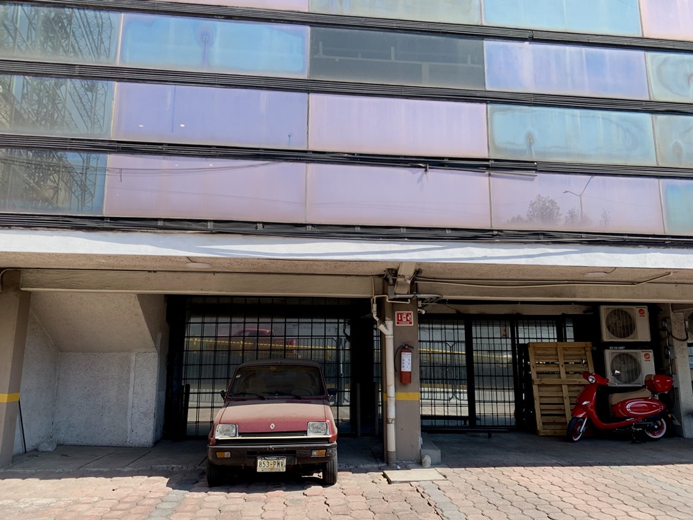 Hace casi medio siglo este edificio vivió una época de gloria y orgullo: en su entrada se encuentra la gigantesca estructura de la antigua marquesina, el directorio hacia calle donde se informaba cuáles eran sus oficinas. Ya solo queda su esqueleto, que en el estacionamiento del edificio le hace sombrita a un Renault 5 color vino: auto modelo 1982 o por ahí que no se mueve desde que López Portillo devaluó el peso, a juzgar por las miles de capas de polvo que lo cubren. Está más polvoso que el sarcófago de Tutankamón.