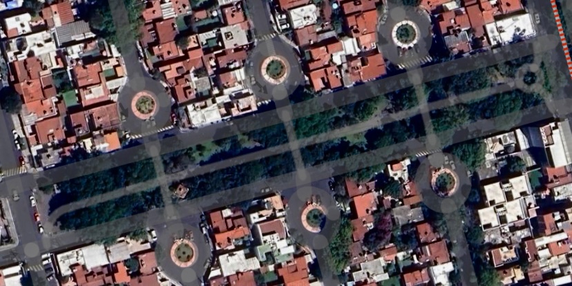 Los rosedalos –gentilicio que daremos a los pobladores del ángulo apacible que, paradójicamente, forman las escandalosas avenidas Miguel Ángel de Quevedo y División del Norte- preservan las rosas de sus huertos particulares y de todo lo que los rodea. En el mapa de abajo entenderás mejor a qué me refiero: El Rosedal se forma por callecitas paralelas (Ruiseñor, Quetzal, Alondra) separadas por un parque lineal, el Jardín de las Rosas; todas acaban en rotondas. Las calles y el parque descargan sus fragancias no solo desde rosas rosadas, las favoritas de los enamorados. Cada rotonda tiene su personalidad: en unas reinan las rosas rubí (rojas), chinas (violetas) y de Austria (amarillas), mientras en otras predominan arcoíris (naranjas), damascenas y mosquetas (rosadas). Y el fervor continúa: hay rosas en la entrada de la Capilla de Nuestra Señora de Guadalupe e incluso a la entrada de Abarrotes El Rosedal, donde das a tu amorcito un sorbo de Tecate regalándole una rosa (arráncale las espinas y la sangre no manchará la apasionada ceremonia).