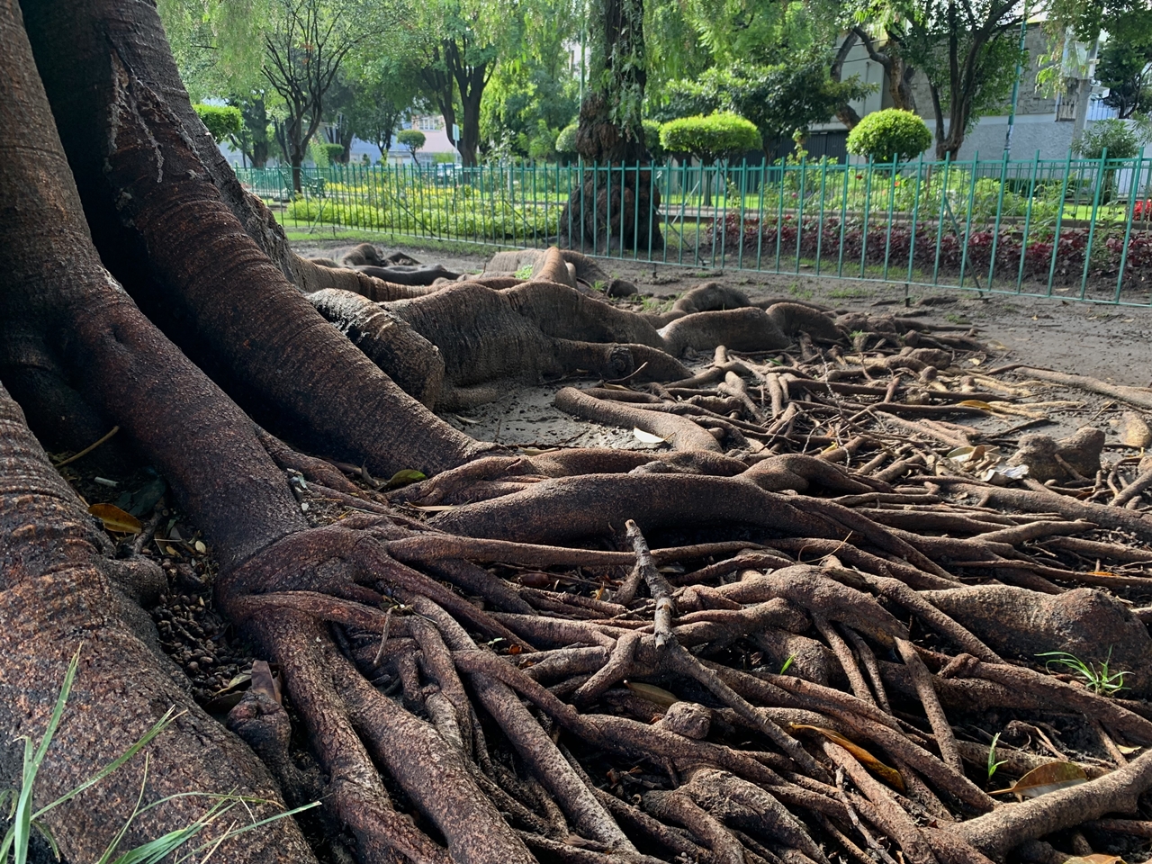 -No crea que la alcaldía, jajaja. Nos paga Runsa Autopartes, están aquí a la vuelta. Ellos quieren que el parque esté bonito-, me señala hacia Avenida Pacífico. O sea, radiadores, baterías y acumuladores que aman rosales. Una rareza que además beneficia tanto a los hules gigantes con raíces que emergen como tribus de serpientes (ver foto), como a los vecinos que sobre bancas de hierro miran el paso de la vida. “Salimos a caminar y es: buenos días, buenos días -explica el abuelo argentino-. Gente muy cordial”.