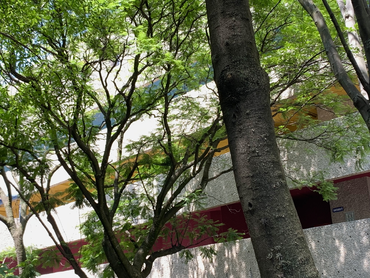 El color de la UPN, en realidad, lo dotan una fuente vegetal y otra humana. Por un lado, los robles, las jacarandas, los agaves americana. Y por otro, una explanada repleta de chic@s –alumnos de Educación Primaria para el Medio Indígena, Estudios de Sexualidad, Política de los Procesos Socioeducativos y montones de carreras más- que confluyen por todos los senderos de la edificación. La UPN requería un gran patio, explicó el arquitecto, “para que los estudiantes se conozcan, charlen y haya encuentros. En un edificio alto el único encuentro es el elevador y nunca se puede hablar en un elevador. Procuré que todas las puertas den al patio y sea un lugar de cruces”.