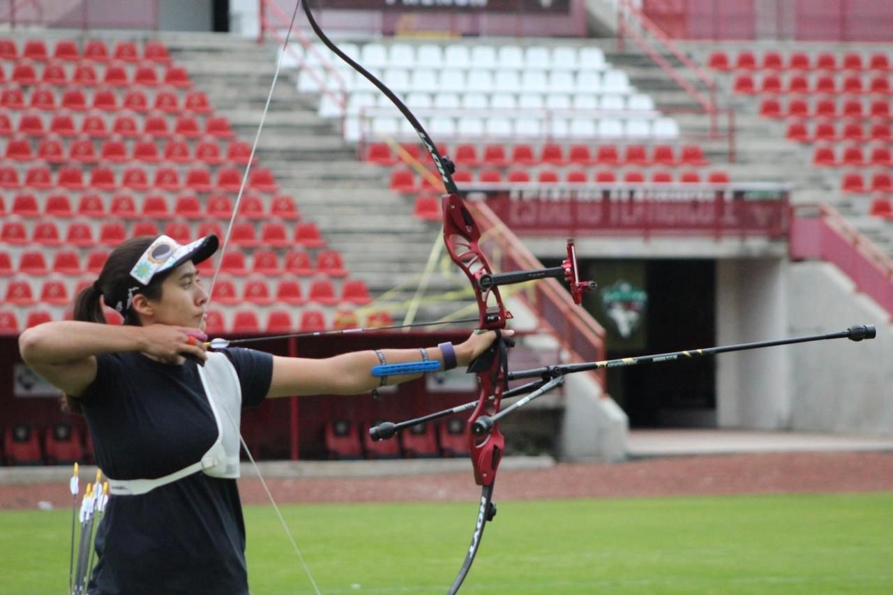 *La medallista de bronce en París disparó sus primeras flechas de entrenamientos en el Estadio Tlahuicole, en la capital tlaxcalteca