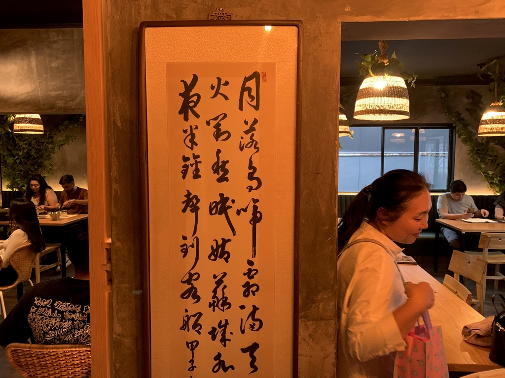 Y al irte con tus manos fragantes pasarás, sí o sí, junto a un muro con un verso escrito en un idioma que desconocemos (pero que nos tradujeron). Dice así: “La luna se oculta, los cuervos graznan y la escarcha llena el cielo / Las luces de los barcos pesqueros y los arces del río acompañan un sueño melancólico”.