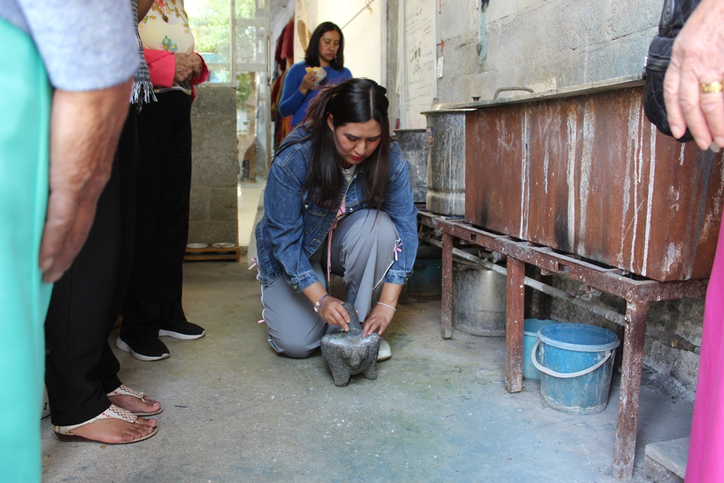 La enseñanza se expande, y los visitantes se vuelven aprendices. Se cuecen las fibras, se preparan los colores y se escuchan historias: anécdotas que van del humor a la nostalgia, recuerdos de infancia de pintar los labios con grana y ser regañada por la madre, viejos dichos sobre burros y perros en los pueblos, secretos transmitidos entre risas y recetas heredadas. Cada participante elige sus colores, cada madeja es sumergida con nombre propio y cada gesto, por más simple, es un eslabón en la cadena de la tradición.