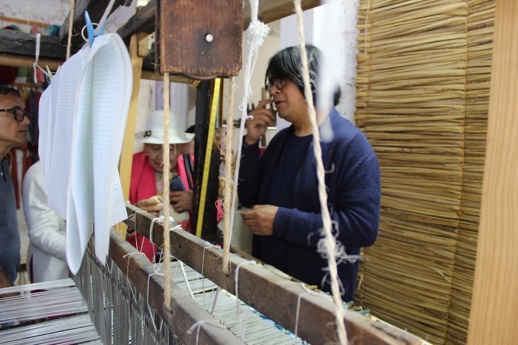 El teñido implica arte y ciencia. Se ocupa de manera meticulosa la piedra de la lumbre, un viejo desodorante natural, para fijar los colores. Los asistentes participan, toman fotos y preguntan sobre cada paso. Sarita relata cómo aprendió a tejer siendo niña, siguiendo el ejemplo de primas, tías, abuelas; cómo los procesos industriales y los artesanales dialogan en su mente, aunque son mundos distintos: el industrial es veloz y contaminante, el artesanal es lento y sustentable.