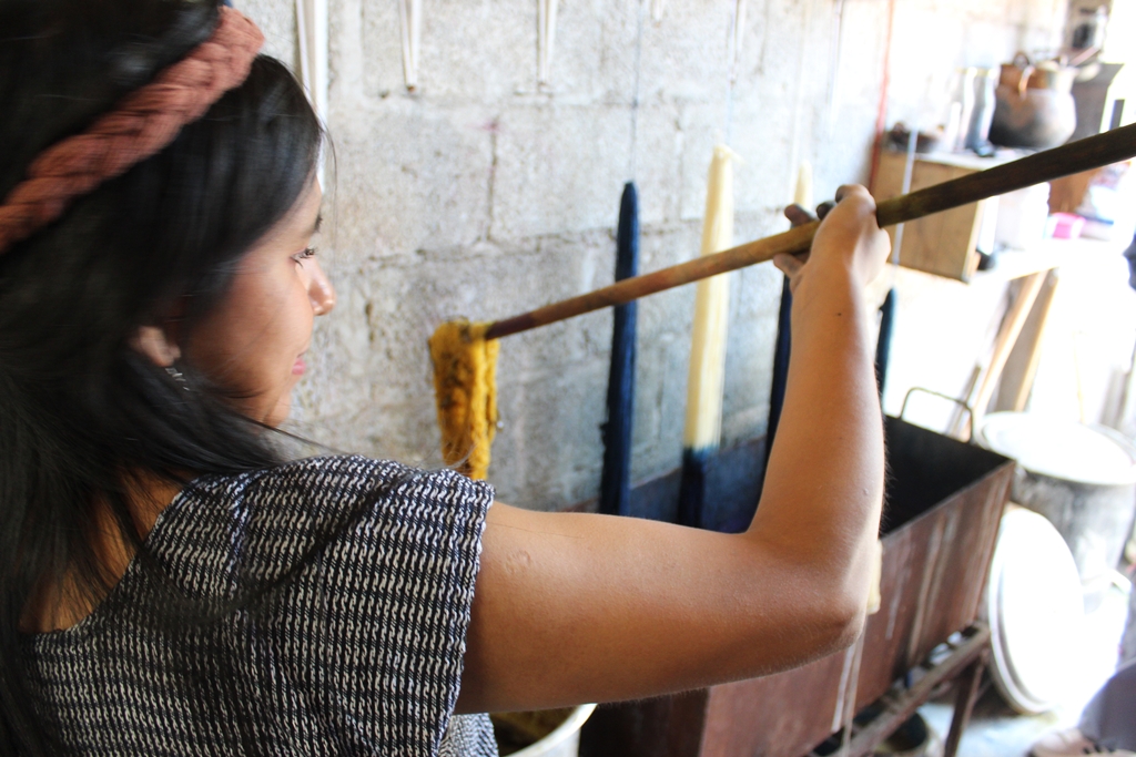 Sarita, estudiante y prima de Ignacio, se encarga del proceso del teñido. El taller se convierte en laboratorio: ollas, alumbre, madejas, calor, y paciencia. Entre broma y enseñanza, va mostrando cómo el pericón suelta su amarillo, la grana cochinilla pincela rojos intensos y el añil, azul profundo, se obtiene de la indigófera, una planta delicada y escasa.