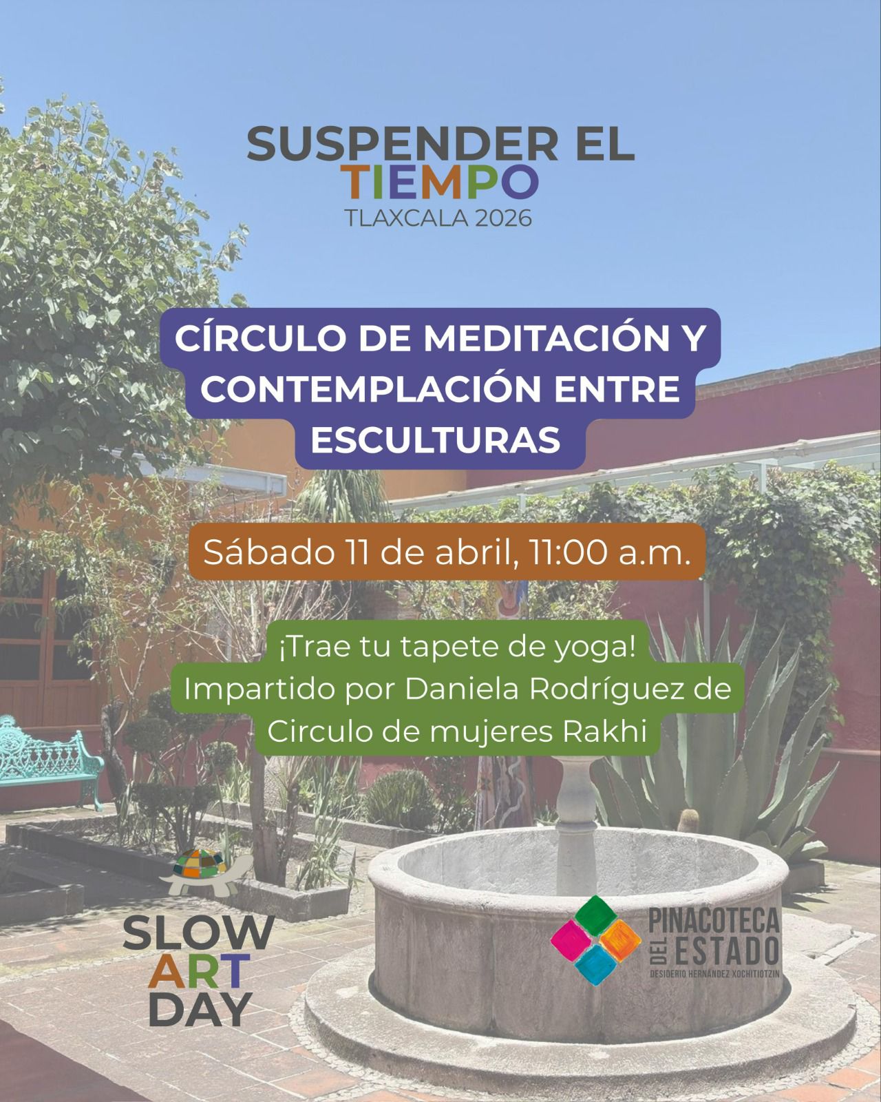 En la Pinacoteca del Estado “Desiderio Hernández Xochitiotzin”, la experiencia se traslada al jardín escultórico con una dinámica meditativa que incluye ejercicios de respiración y observación profunda, orientados a propiciar una conexión más introspectiva con el entorno artístico.