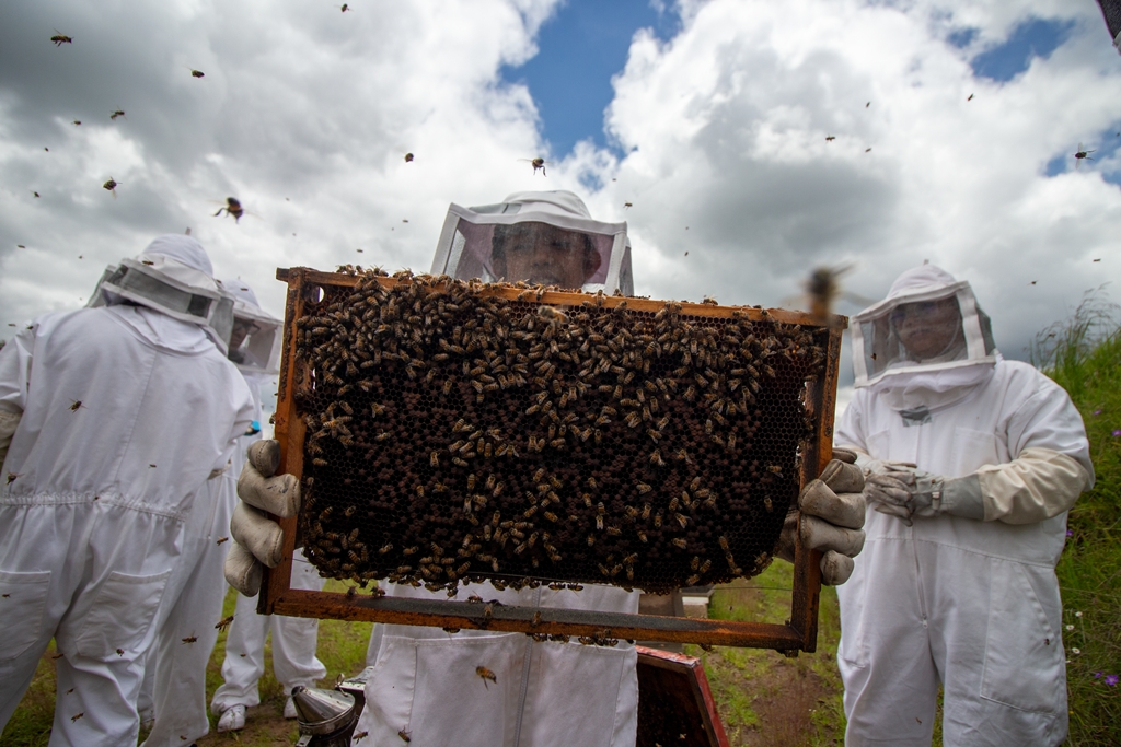 *En el rancho La Soledad se realiza el llamado “Apiturismo”, una práctica para conocer la vida en la colmena de...