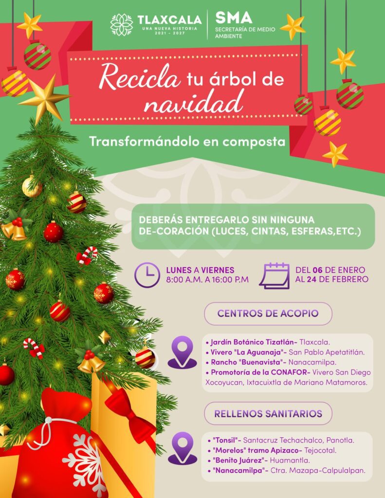 Pasión es Dónde reciclar tu árbol de navidad Identidad Tlaxcala4 enero, 2025 *Serán utilizados en las planchas de composta que se encuentran en el Jardín Botánico de Tizatlán La Secretaría de... Artículo completo